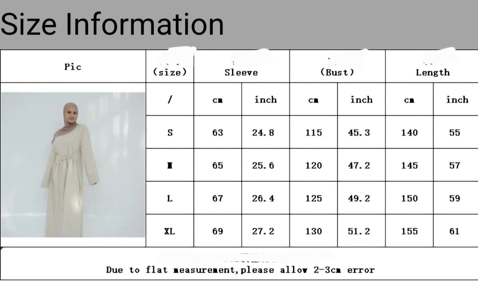 Refer to size chart